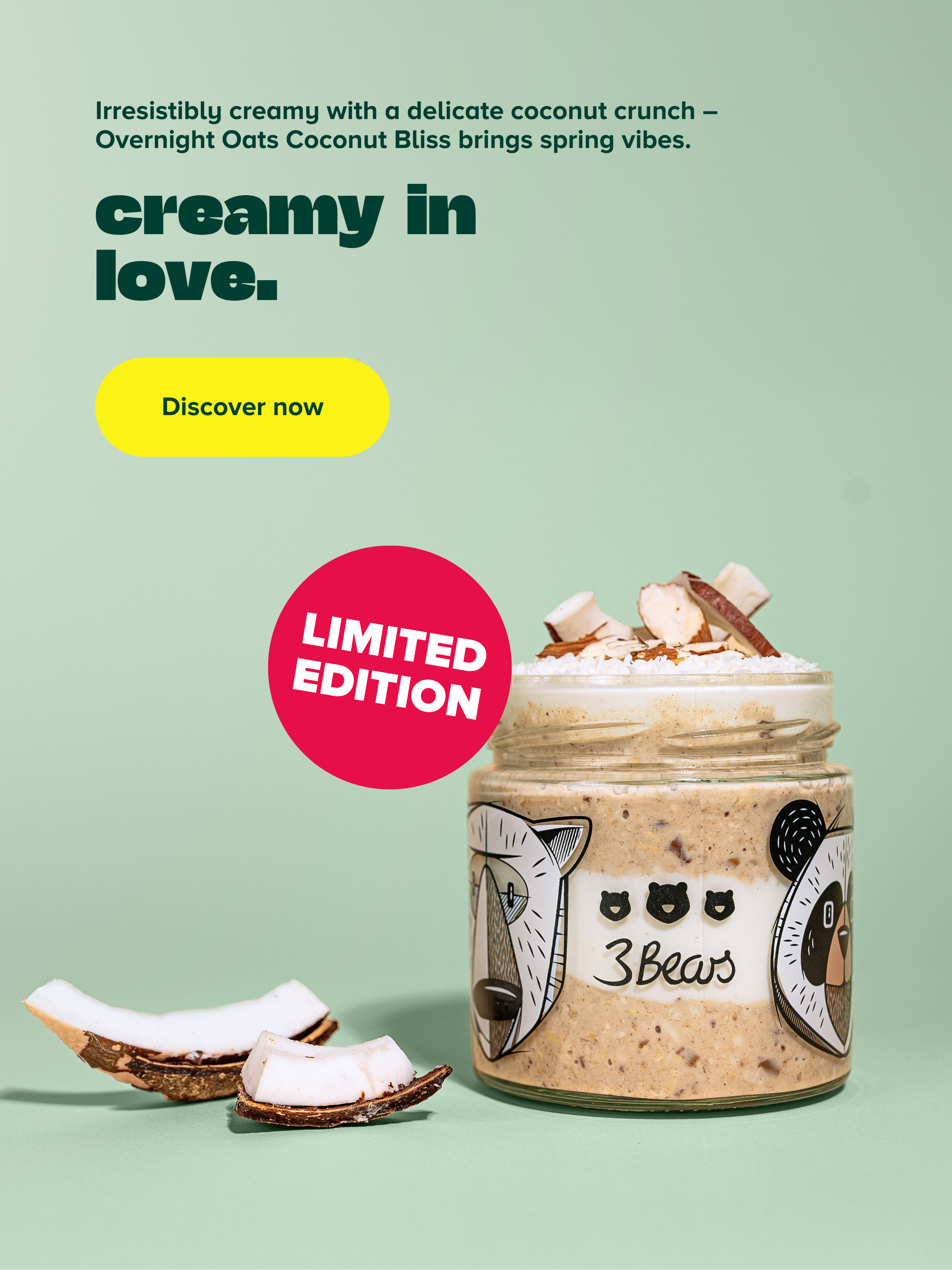 At 3Bears it's all about you and your morning. We are a small team of food enthusiasts based in Munich and get up every day with a mission: to enrich your life with the most delicious oatmeal & enrich porridge products without any added sugar! Our focus is on porridge, overnight oats and oat bars - the ultimate superstars for an energetic start to the day. With us you will find everything: overnight oats, granola, porridge, porridge for children, functional porridge for athletes, oat bars, accessories and much more.