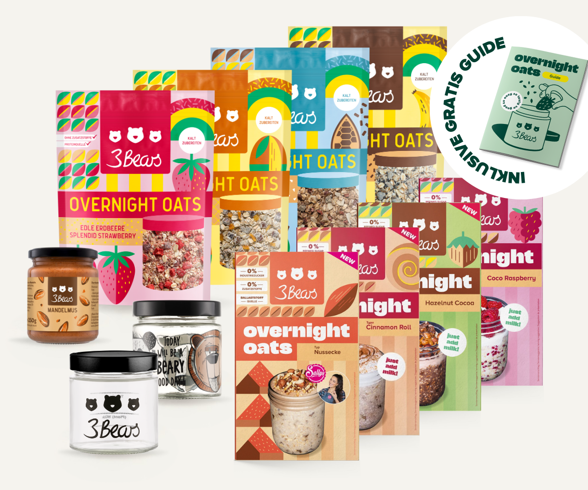 Wir sind Caro und Tim, ein deutsch-britisches Paar, und haben 2016 3Bears gegründet. Warum? Weil wir zum Einen einfach richtig große Hafer-Fans sind und begeistert sind wie viel Gutes in Vollkorn-Hafer steckt. Zum Anderen wollten wir Hafer-Produkte machen, die dein Leben einfacher machen. Dir tolles Frühstück bieten, das unglaublich lecker und abwechslungsreich ist – dabei easy in der Zubereitung und so natürlich wie nur möglich. Wir verzichten komplett auf Industriezucker und Aromen, packen getrocknete Früchte in unsere Mischungen und überlegen uns immer wieder in unserer Experimentier-Küche neueste Sorten. Alles bei uns ist 100% pflanzlich und 100% lecker. Probier's aus und werde Teil unserer Community. Join the Morning Oats Club!