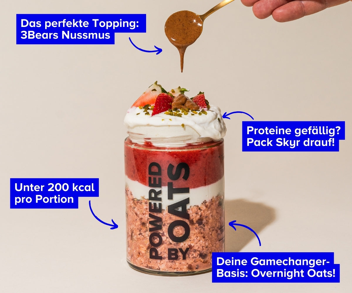 Eigentlich spielt Größe für uns überhaupt keine Rolle. Für unser neues Overnight Oats Gadget machen wir da mal ne Ausnahme. Jetzt heißt es: “GO BIG” mit unserem neuen extra großen Glas. Ihr habt so oft gefragt und jetzt haben wir delivered. In das neue Glas passt die doppelte Menge Oats! Nämlich 100 g Haferflocken und zusätzlich ganz viel Platz für deine liebsten Toppings. Genieße ab jetzt deine Overnight Oats eine Nummer größer. Perfekt für dein Meal-Prep, unterwegs oder nach dem Sport. Eigentlich auch egal, Hauptsache noch mehr Oats, würden wir sagen.Tipps zur Pflege