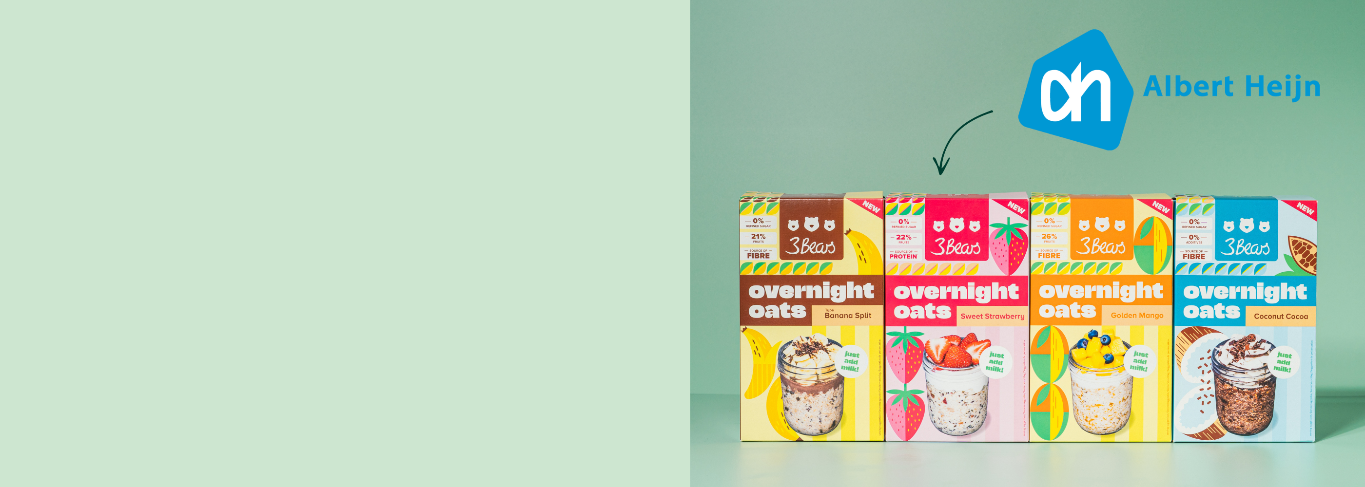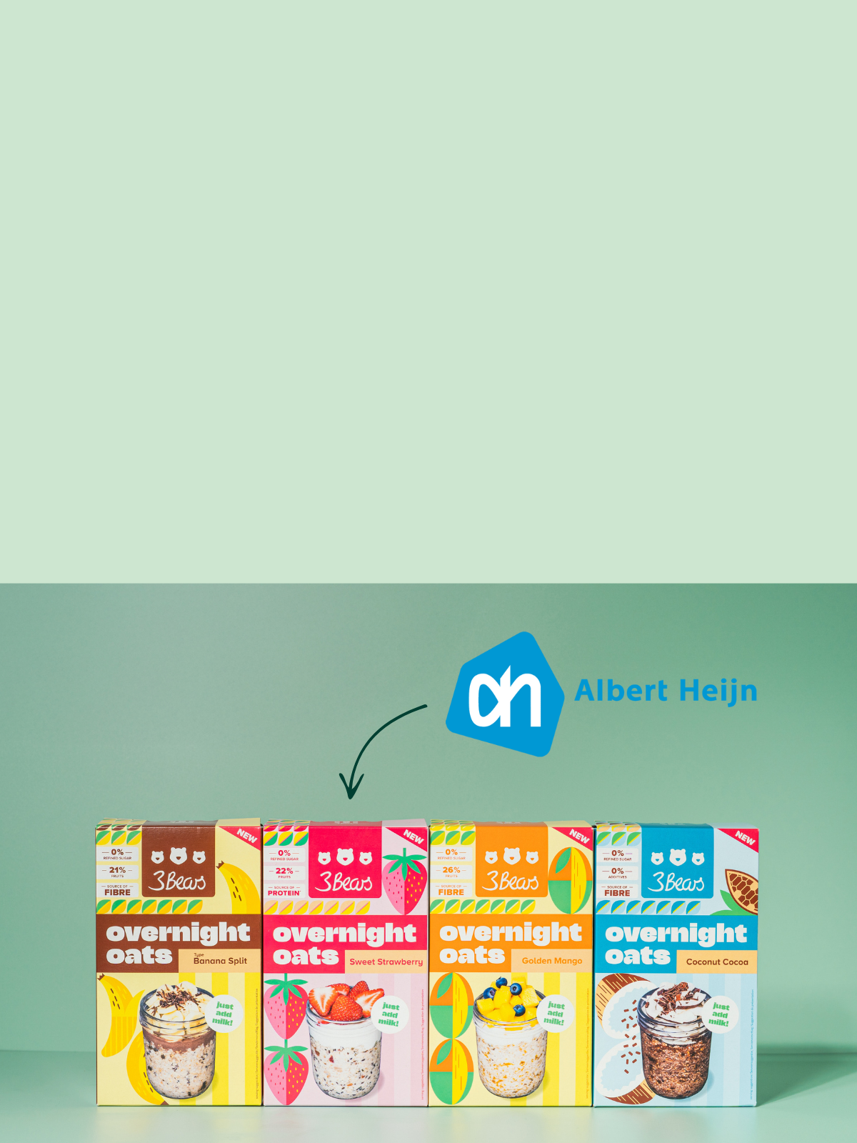 Mega nieuws: vanaf nu zijn vier van onze bestverkochte Overnight Oats exclusief verkrijgbaar bij alle deelnemende Albert Heijn-vestigingen in Nederland!We hebben je nodig: help ons om ervoor te zorgen dat onze producten permanent bij AH verkrijgbaar blijven en sla bij je volgende boodschappen flink je slag – bedankt voor je steun 🧡