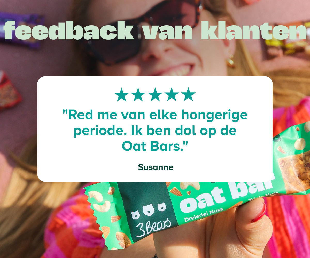Bij 3Bears krijg je premium producten van mensen voor mensen. Caroline en Tim, een Duits-Brits echtpaar, richtten in 2016 3Bears op. Op ons kantoor in München werken inmiddels ruim 20 enthousiaste mensen die er alles aan doen om ervoor te zorgen dat u elke dag kunt genieten van geweldige Oats-producten.
