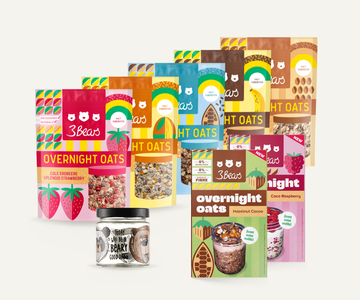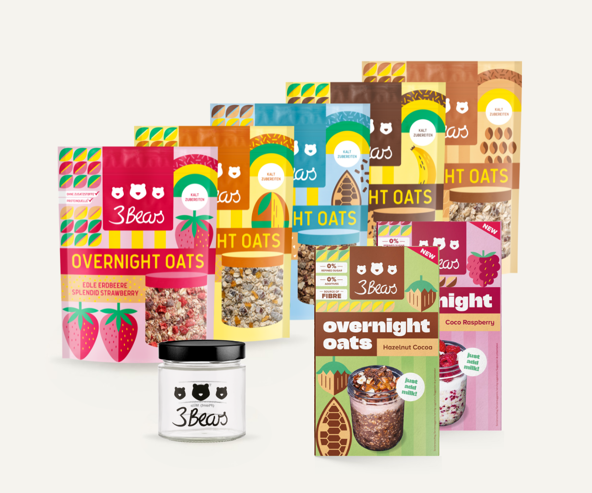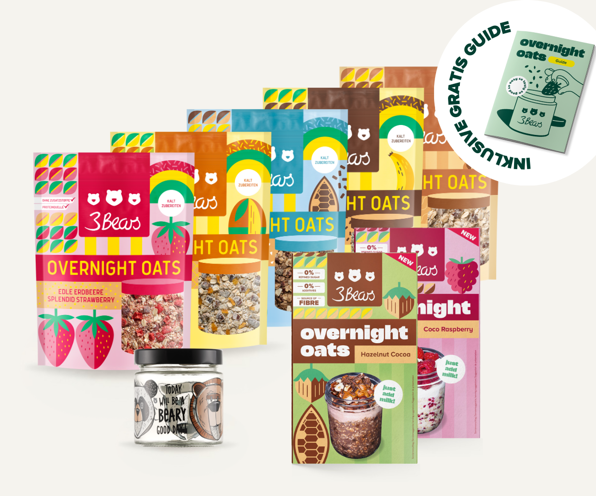 We hebben 3Bears in 2016 opgericht omdat we gefrustreerd waren door de hoeveelheid suiker die in zoveel voedingsmiddelen verborgen zat. We hebben pap naar Duitsland gebracht omdat het voor ons het perfecte, gezonde ontbijt is. Je kunt nu vrijwel alles wat met haver te maken heeft bij ons krijgen: overnight oats, repen, granola en accessoires. En u kunt erop vertrouwen dat wij ons altijd aan onze principes houden. Er zitten geen industriële suikers of additieven in onze producten, ze zijn altijd 100% plantaardig en duurzaamheid zit diep in ons geworteld.