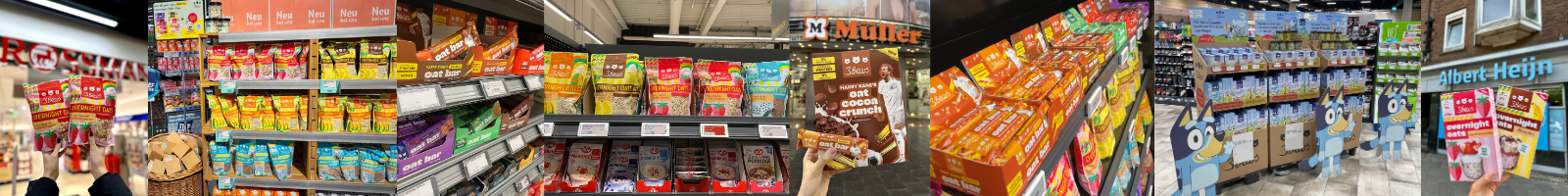 Overnight oats, cereals, oat bars, porridge, granola and our Bluey organic products are available in our online shop and in selected retail chains in Germany, Austria, Switzerland and the Netherlands. You will find a selection of our most popular varieties in stores. Our complete range is available online.