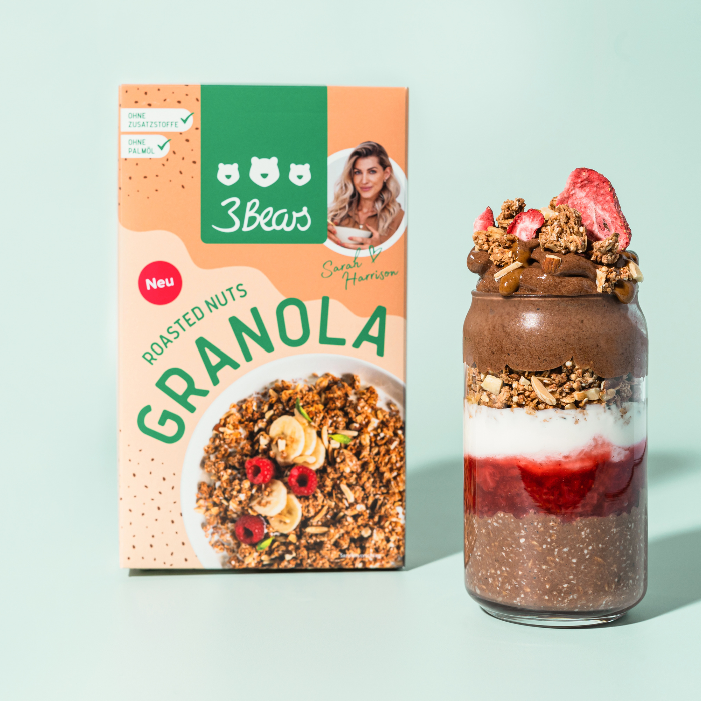 This is what influencer Sarah Harrison says about the granola she created with 3Bears: “I was looking for a super tasty, crunchy granola without processed sugar for ages. Unfortunately, it's really hard to find something like that. That's why I'm particularly proud that I developed two such fantastic varieties together with 3Bears! You will see that my granola tastes like it was homemade and is wonderfully varied. Try it with yoghurt and fresh fruit or just straight from the pack!”