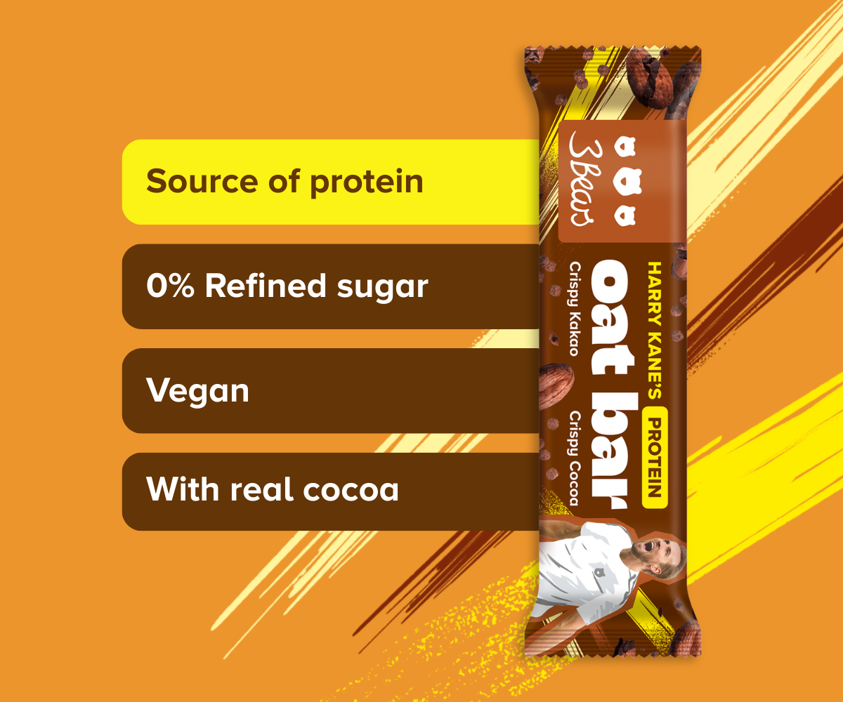 Together with Harry Kane, we have developed two protein oat bars that combine great taste with high-quality ingredients and are an excellent source of protein. Whether it’s a post-workout snack, a quick pick-me-up during the day, or a bar for the whole family: the Crispy Cocoa and Salted Peanut bars set a new standard. Why not see for yourself – try our super delicious game-changing protein bars now!