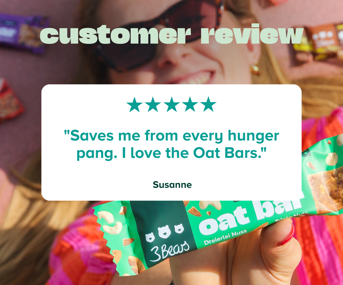 We founded 3Bears in 2016 because we were frustrated with how much sugar was in so many foods. We brought porridge to Germany because we think it's the perfect basis for a wholesome breakfast. You can now get pretty much everything to do with oats from us: overnight oats, bars, granola and accessories. And you can trust us to always stick to our principles. Our products contain no industrial sugar, no additives, they are always 100% plant-based and sustainability is deeply rooted in us.