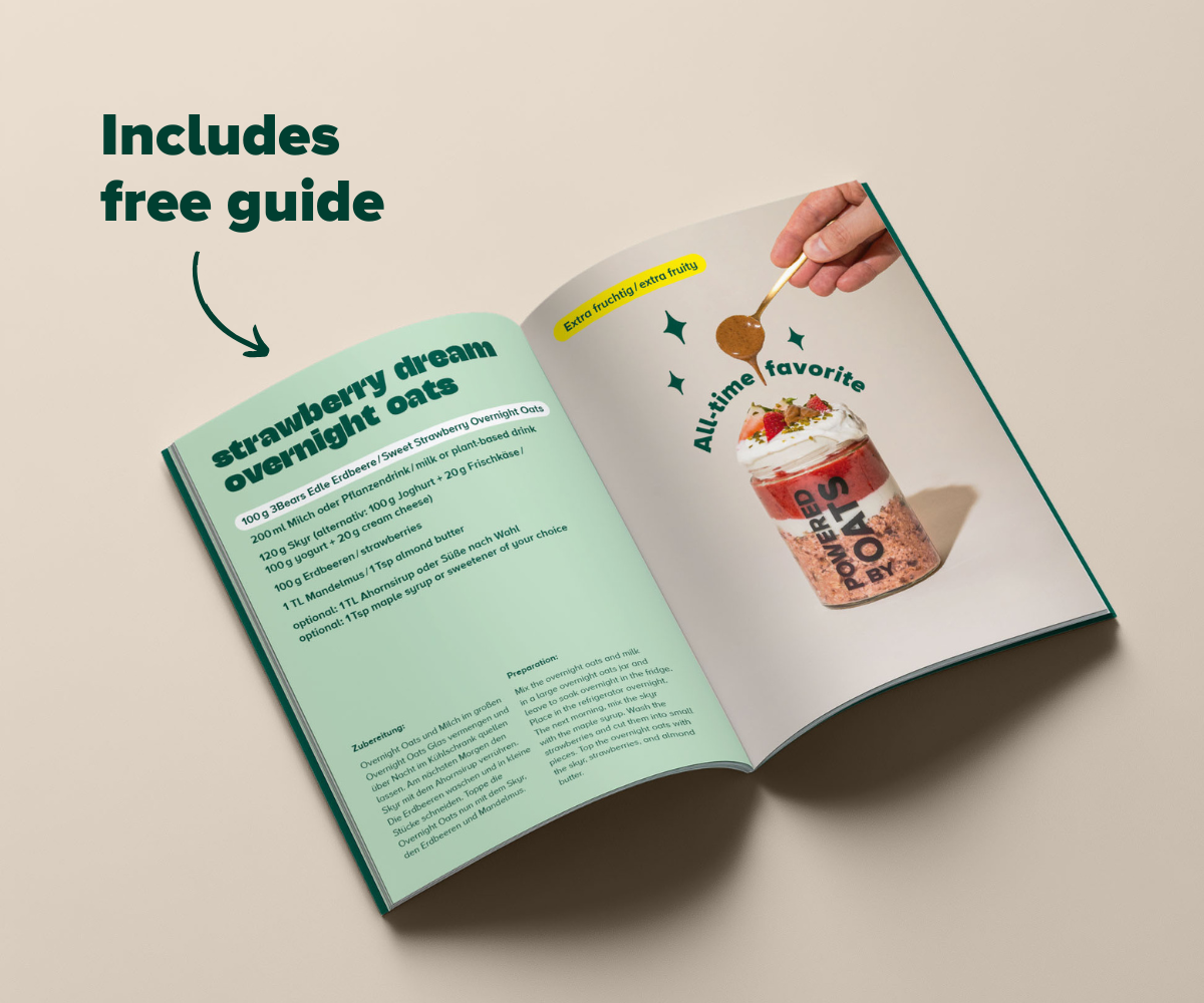 We founded 3Bears in 2016 because we were frustrated by how much sugar was hidden in so many foods. We brought porridge to Germany because for us it makes the perfect, wholesome breakfast. You can now get pretty much everything related to oats from us: overnight oats, bars, granola and accessories. And you can trust us to always stick to our principles. There is no industrial sugar or additives in our products, they are always 100% plant-based and sustainability is deeply rooted in us.
