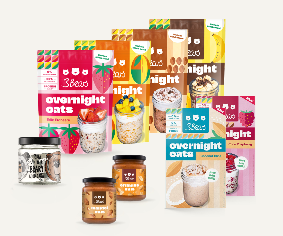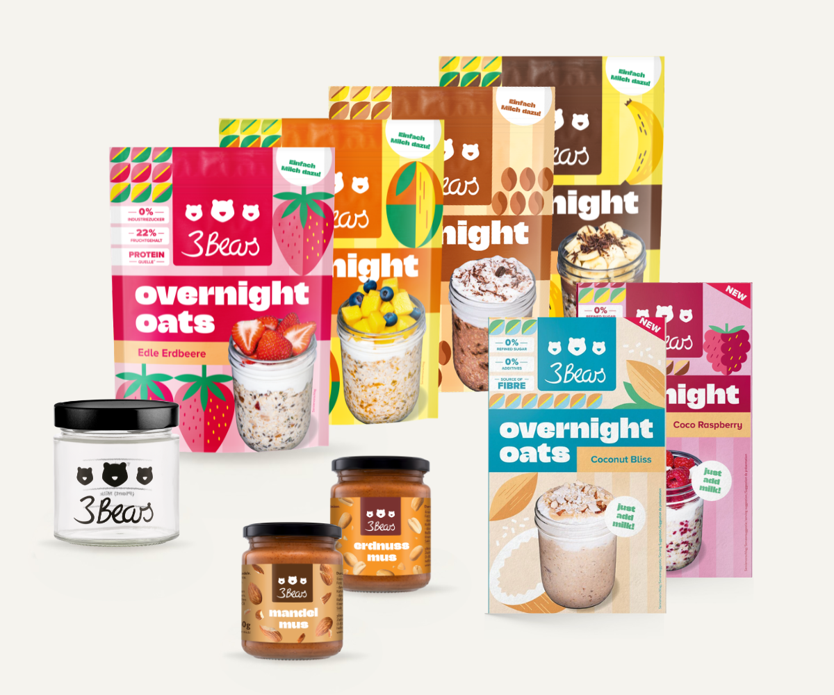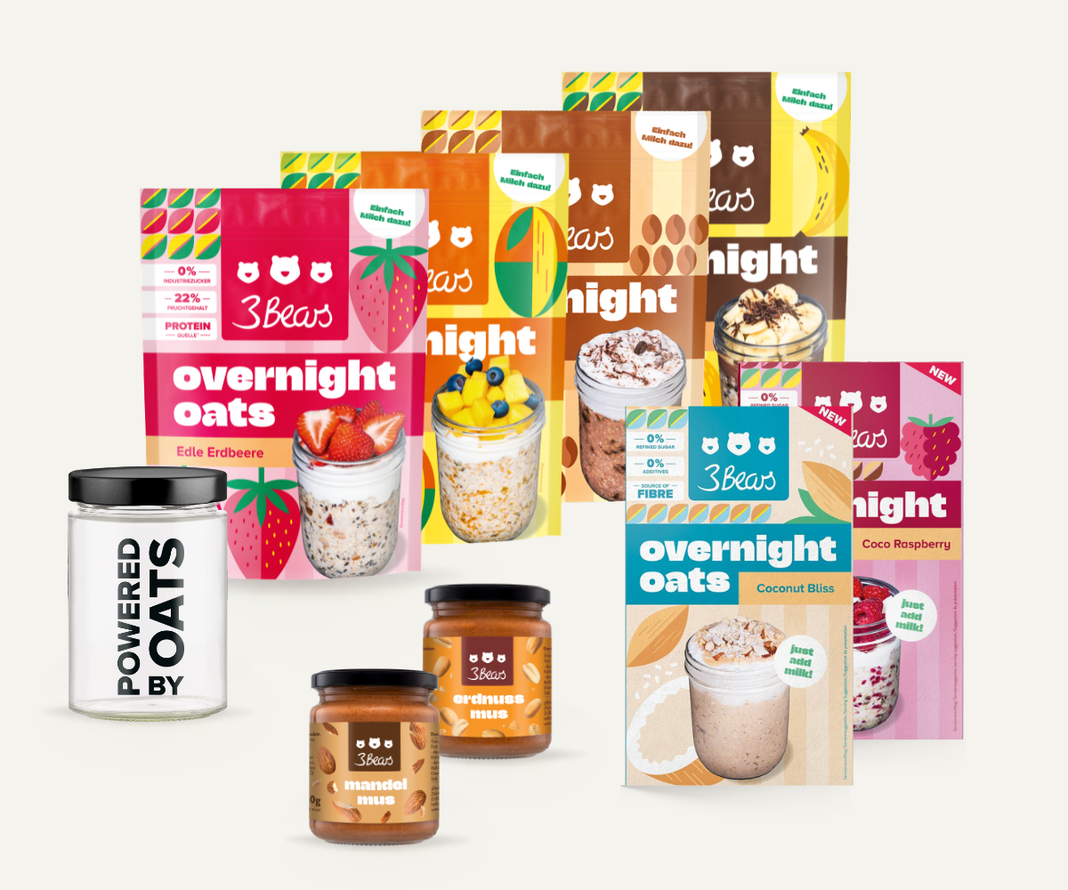 We founded 3Bears in 2016 because we were frustrated by how much sugar was hidden in so many foods. We brought porridge to Germany because for us it makes the perfect, wholesome breakfast. You can now get pretty much everything related to oats from us: overnight oats, bars, granola and accessories. And you can trust us to always stick to our principles. There is no industrial sugar or additives in our products, they are always 100% plant-based and sustainability is deeply rooted in us.